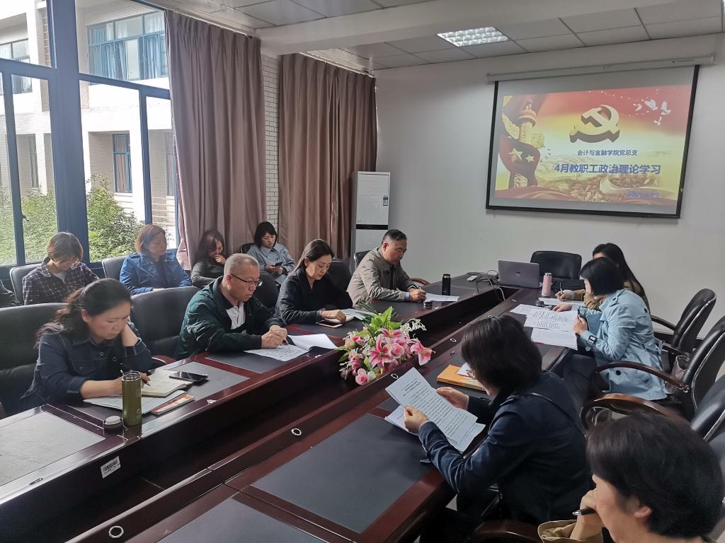 为深入学习习近平新时代中国特色社会主义思想,根据校党委宣传部印发的《关于2021年4月教职工政治理论学习的通知》(校党宣函[2021] 5号),4月21日下午,会计与金融学院党总支在育能楼B223会议室开展了4月教职工政治理论学习活动,校党委书记郭庆、会计与金融学院党总支全体教职工围绕习近平总书记近期重要讲话精神、党史专题、“四史”专题等方面进行了深入系统地学习。