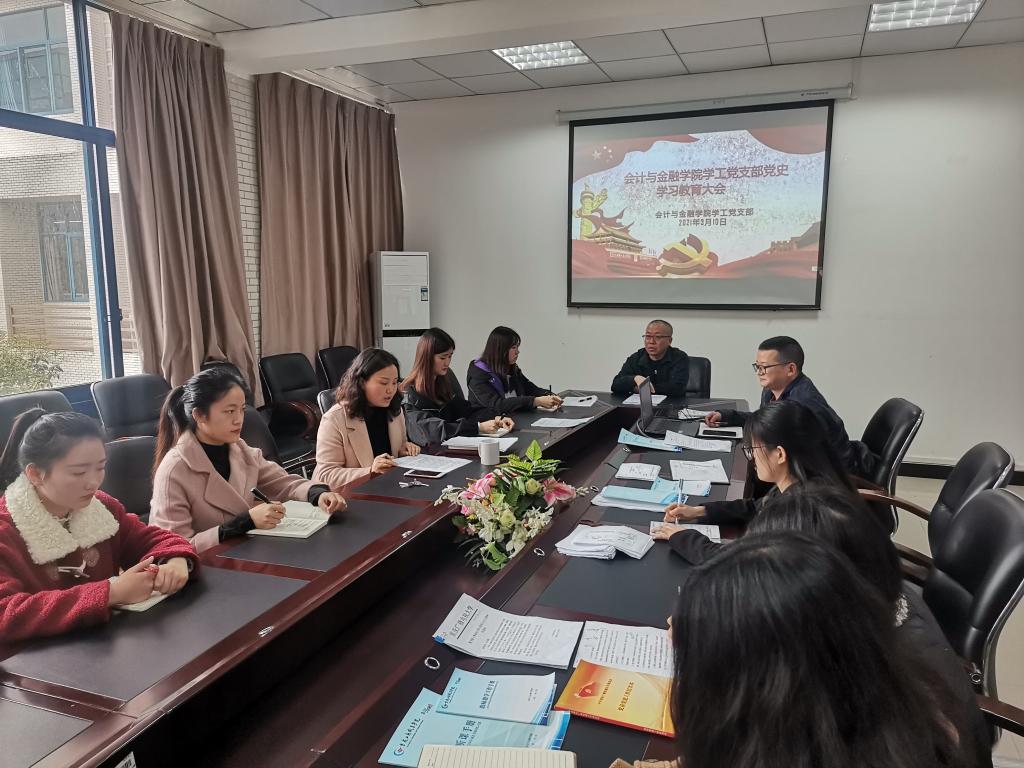 【供稿人/时文龙】根据中央、市委和市委教育工委对开展党史学习教育系统安排部署和学校党史学习教育动员大会精神,按照学校《关于开展党史学习教育的实施方案》文件要求,3月10日下午,会计与金融学院党总支在育能楼B223会议室开展了党史学习动员会,本次学习动员会由总支书记李丞北支持,学院全体党员师生参加。