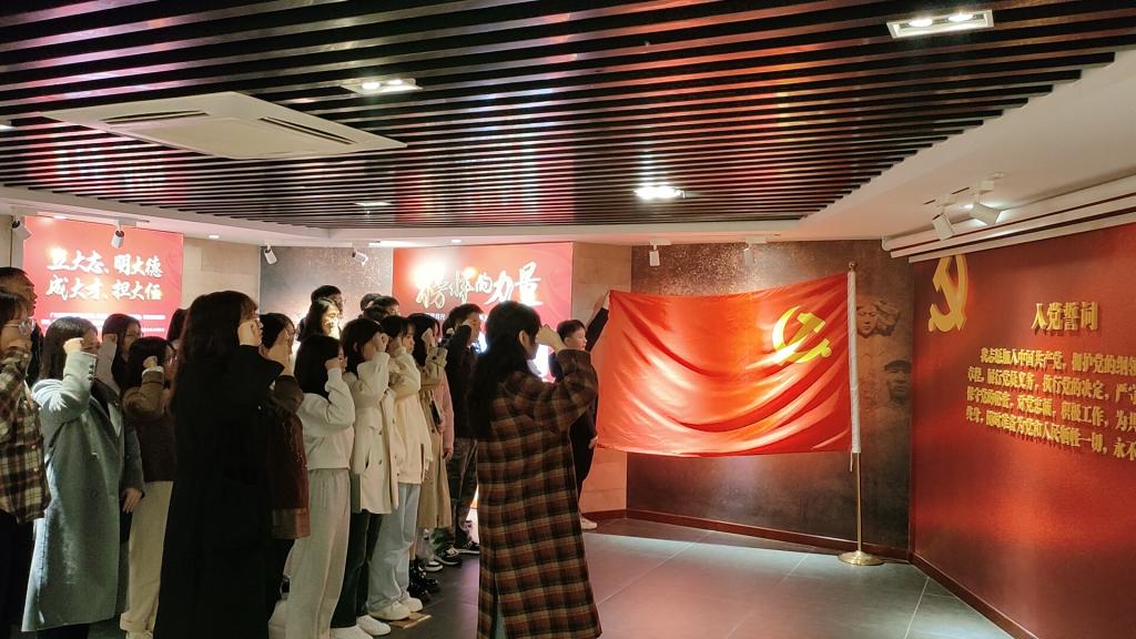 接着,在杜彦臻同志的领誓下,全体师生党员重温了入党誓词,通过重温入党誓词,使师生党员们深深感受到身为党员的使命和荣耀。随后,全体师生党员一起进行了座谈交流,师生党员们纷纷分享了自己对红岩精神的理解和感受。