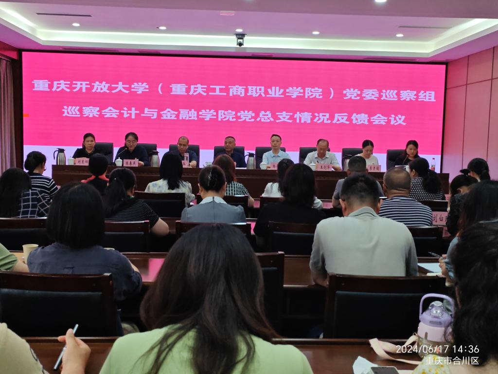 【编辑/钟金玲】按照校党委要求和党委巡察工作领导小组的部署,2024年4月17日-5月16日,党委巡察组对会计与金融学院党总支开展了常规巡察。2024年6月17日,党委巡察组巡察我院党总支情况反馈会议在合川校区220会议室召开。校党委书记、校党委巡察工作领导小组组长郭庆同志参加会议,代表学校党委充分肯定了巡察组的工作,对我院党总支做好巡察整改工作提出要求。会议由我院党总支副书记刘茂玲同志主持。