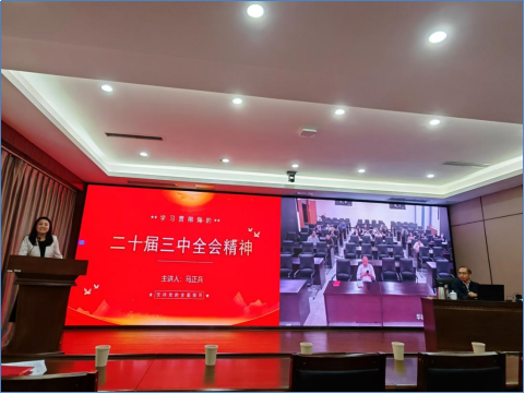 【撰稿钟金玲】2024年10月16日下午2点,学校党委委员、副校长马正兵同志为会计与金融学院、网络安全与信息技术中心、计划财务处(资产管理处)、采购中心全体教职工宣讲党的二十届三中全会。宣讲会在合川校区行政楼220会议室和华岩校区综合楼一楼双向视频会议室举行。会计与金融学院党总支副书记刘茂玲主持了宣讲会。