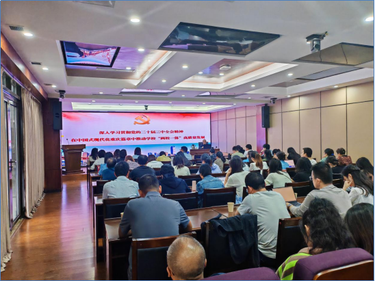 马正兵就党的二十届三中全会的召开背景、全会主题、基本原则和重大改革举措进行了全面宣讲,并结合新时代第二次全国教育大会和重庆市委六届六次全会精神,阐述了在中国式现代化重庆篇章中谋划学校“两校一体”高质量发展的路径和举措。