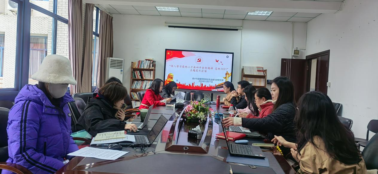 【供稿 吴脊】2025年12月17日下午15:00,会计与金融学院党总支金融与财管党支部在育能楼B223召开主题党日活动,专题学习贯彻党的二十届四中全会精神,系统谋划“十五五”开局,全面总结2025年党建与育人工作。支部全体师生党员参加。