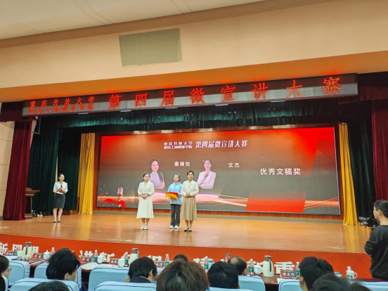 【供稿 钟金玲】2024年11月20日下午,学校“学习新思想 奋进新征程 建设新重庆”第四届微宣讲大赛在华岩校区成功举办。我院教师秦婉怡代表学院党总支参加了此次比赛,并凭借出色的表现荣获三项大奖,为我院赢得了荣誉。