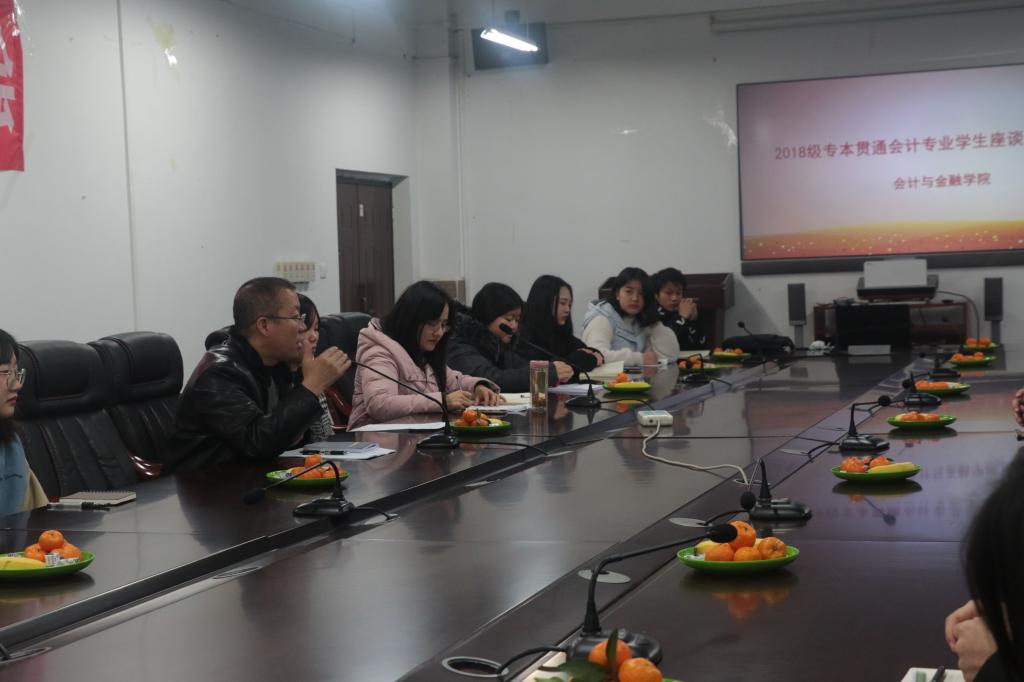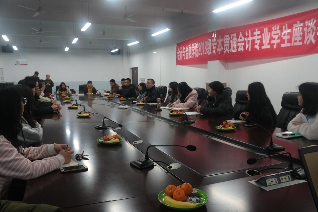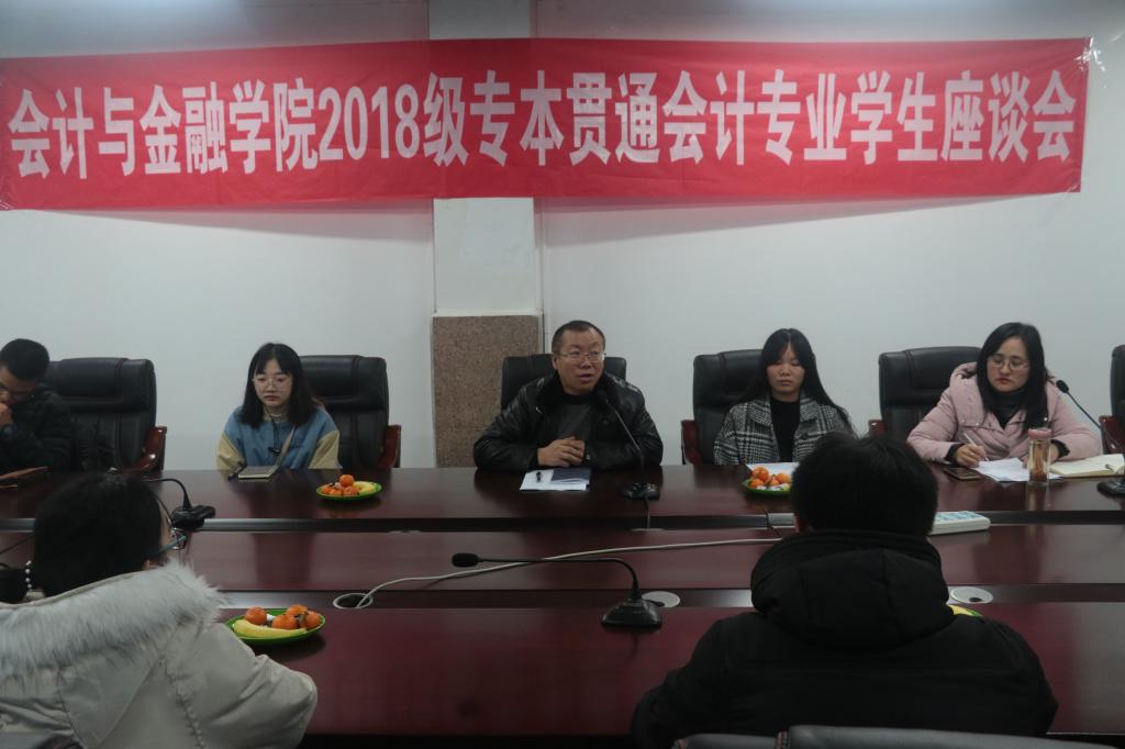 【供稿人/姜丽霞】 为充分了解2018级专本贯通会计专业学生入学来的学习、生活等情况,引导他们树立正确的目标、明确努力的方向,2018年12月11日晚上,会计与金融学院院长李承北教授在B107会议室与2018级专本贯通会计专业学生代表进行了近两小时的座谈。