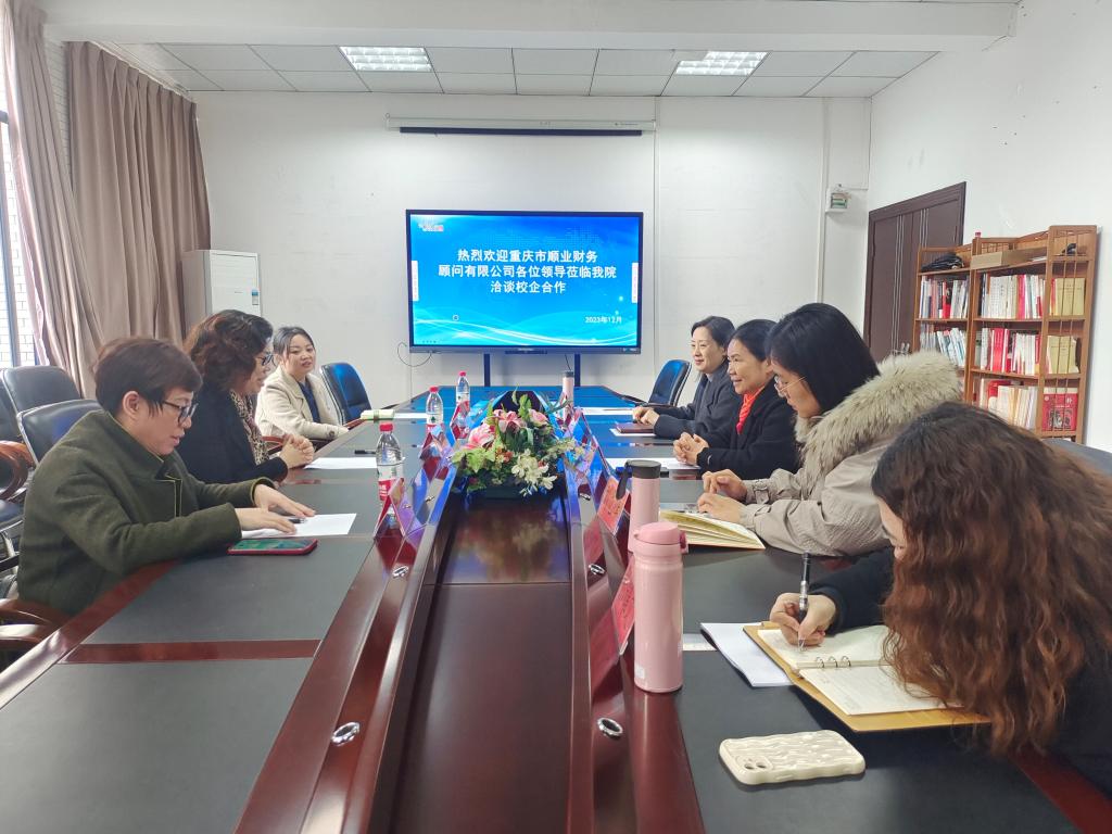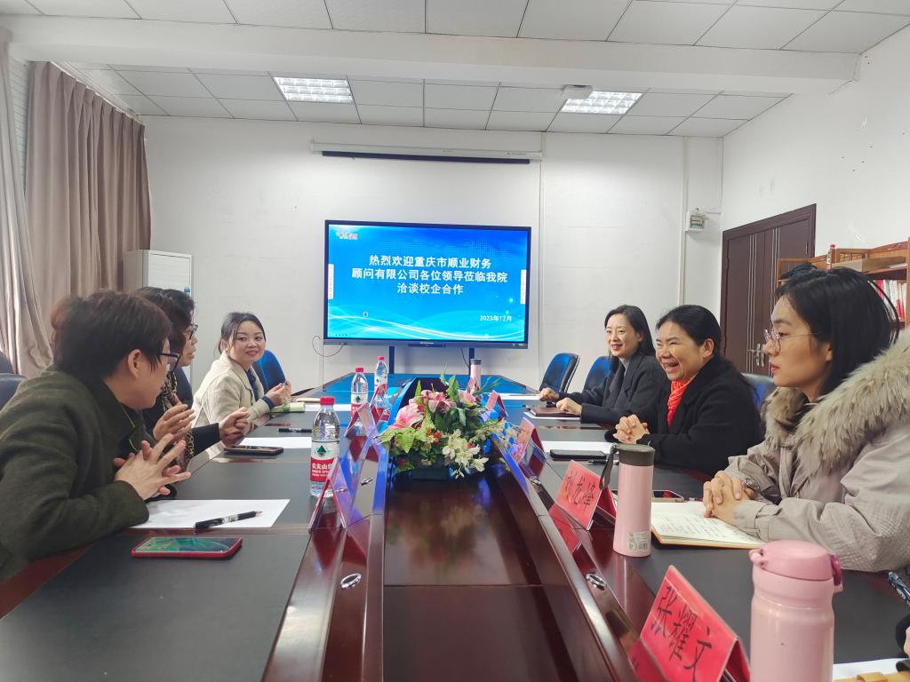 12月5日下午,重庆市顺业财务顾问有限公司总经理姚敏一行3人来我校考察、洽谈校企合作,学院院长刘东辉、副院长方华、各教研室主任及招就科科长参加交流座谈。