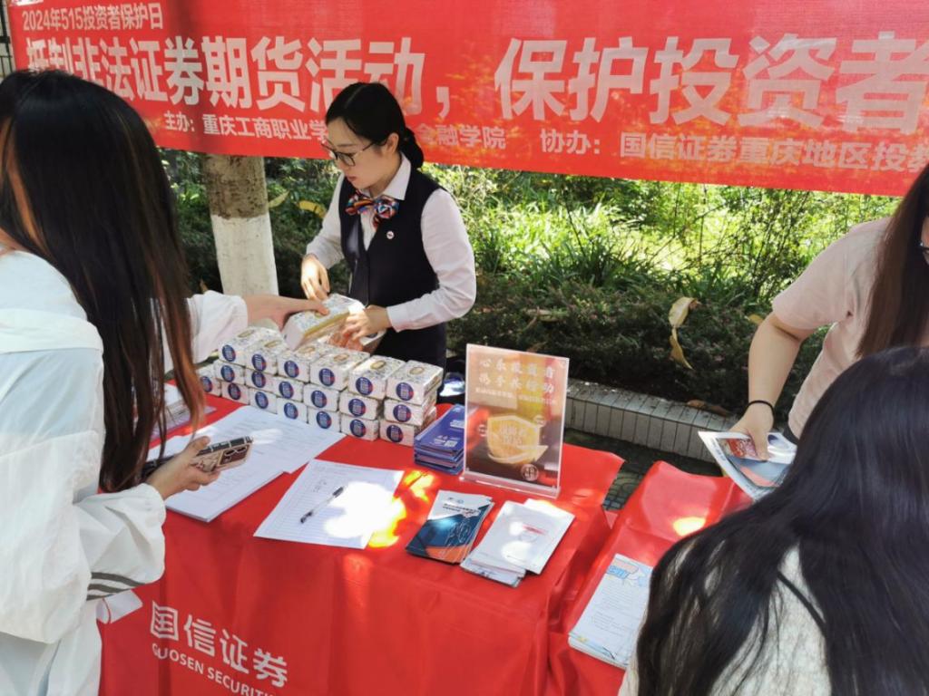 【撰稿人牛媛】“5.15全国投资者宣传日”来临之际,为向广大师生普及防非反诈知识,由会计与金融学院主办、国信证券重庆地区投教基地协办、工商职业学院前锦证券协会承办的主题为“抵制非法证券期货活动,保护投资者合法权益”的宣传活动于5月15日在华岩校区举行。