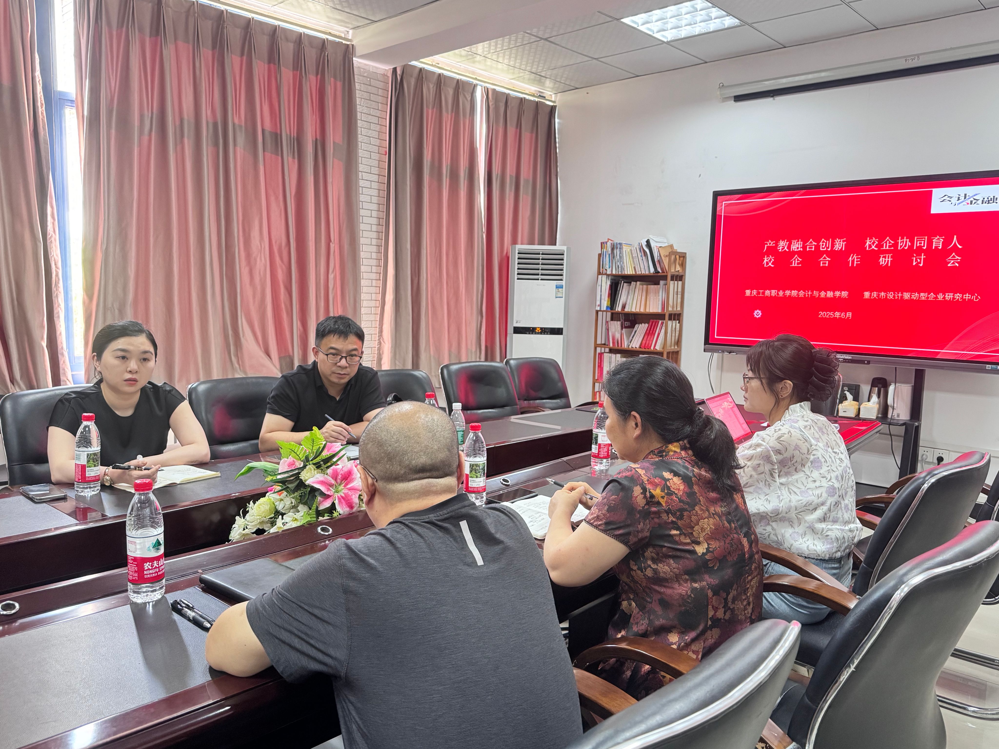 为深化产教融合,推动专业建设与产业升级同频共振,优化人才培养体系,2025年6月10日,重庆市设计驱动型企业研究中心执行主任付立平、石东令与重庆工商职业学院会计与金融学院党总支书记向宇、刘东辉院长、魏婷副院长在合川校区B223会议室召开校企合作研讨会,就“科技财税”领域合作展开深度研讨,聚焦课题研究、人才培养与平台共建,推动校企协同迈上新台阶。