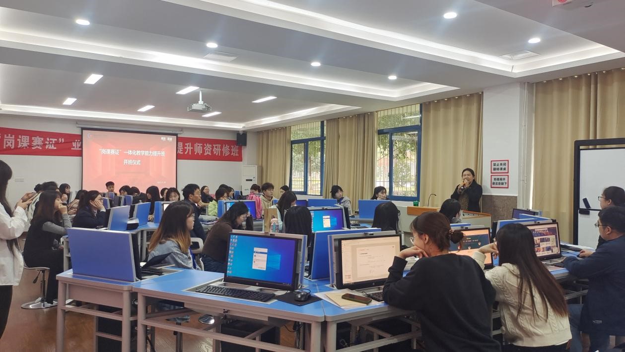 为进一步落实《关于推动现代职业教育高质量发展意见》《关于深化现代职业教育体系建设改革的意见》等系列重要文件精神,深化职业院校内涵建设,推进“产教融合和科教融汇”、“岗课赛证综合育人模式”、聚焦职业教育适应性与高质量发展,2023年11月10-11日,由新道科技股份有限公司主办,重庆工商职业学院承办的“岗课赛证”业财一体化教学能力提升师资培训在育能楼B107(财务分析与应用实验室)如期举行,重庆市各兄弟高职院校的骨干教师及学生参加本次培训。