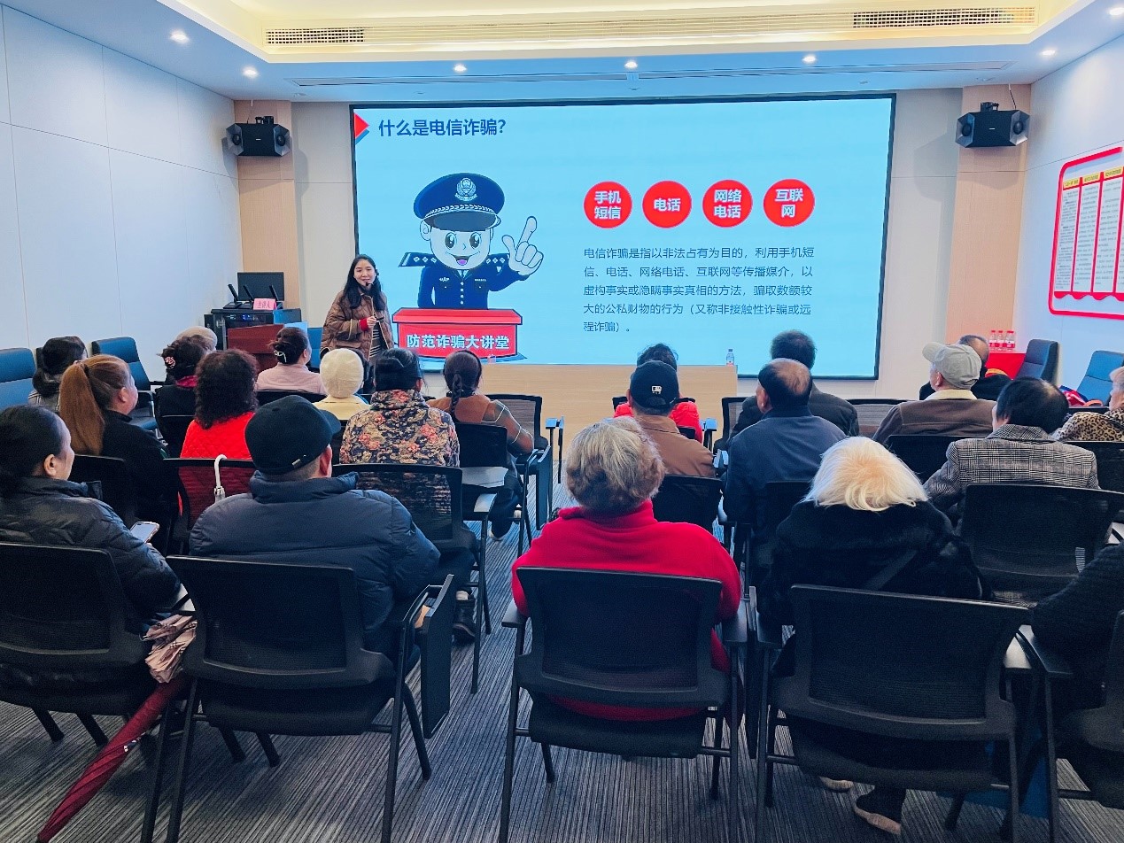 讲座中,会计与金融学院的老师们向居民们详细介绍了当前常见的诈骗手段,分享了一些真实的诈骗案例,分析了案例中涉及的各种诈骗手法,并给出了实用的防范方法建议。老师们强调,随着科技的发展,诈骗手法日益猖獗,大家必须提高警惕,增强防范意识。