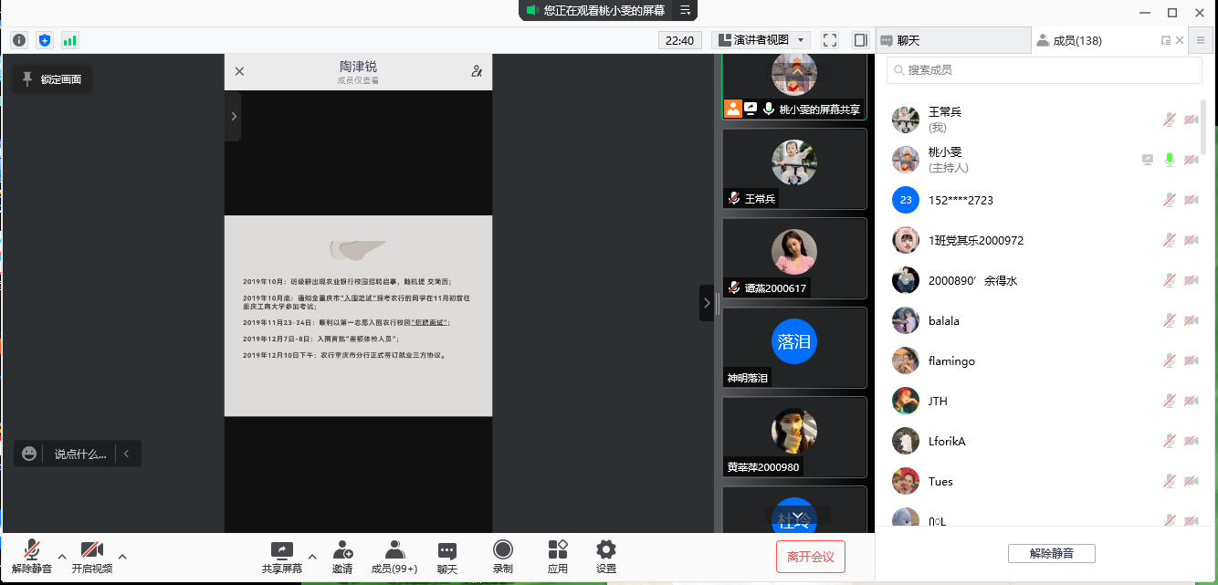 【供稿人/王常兵】11月17日,我院举办了优秀校友线上就业经验交流会,本次讲座由招生就业科长王常兵老师主持,2020届优秀毕业生陶津锐主讲,我院2022届毕业生参加。