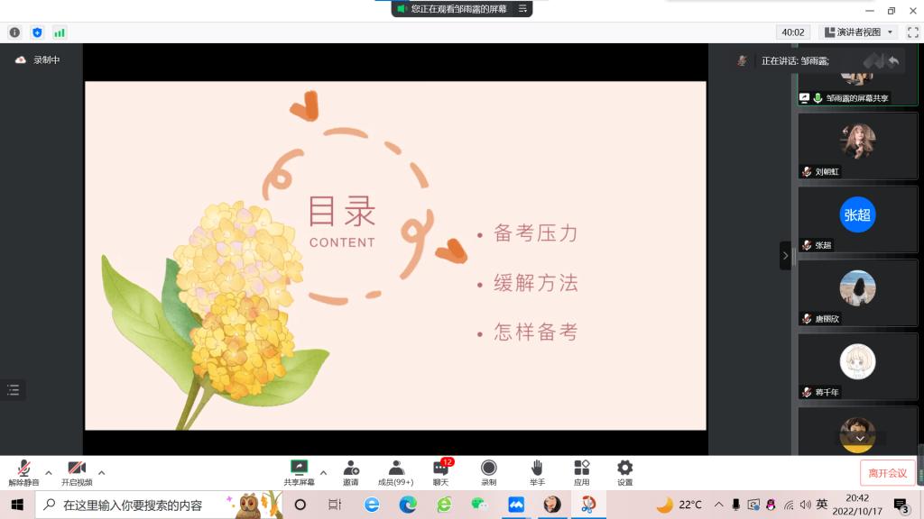 为进一步帮助同学们拓宽就业渠道,会计与金融学院于10月17日晚在腾讯会议开展专升本讲座,重庆科技学院2022届优秀校友蒋千年、长江师范学院2022届优秀校友邹雨露担任主讲人,2023届300余名毕业生线上参会。