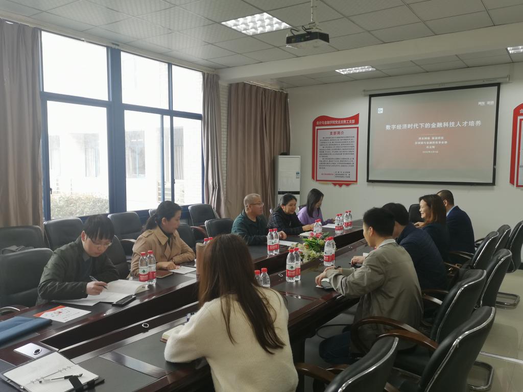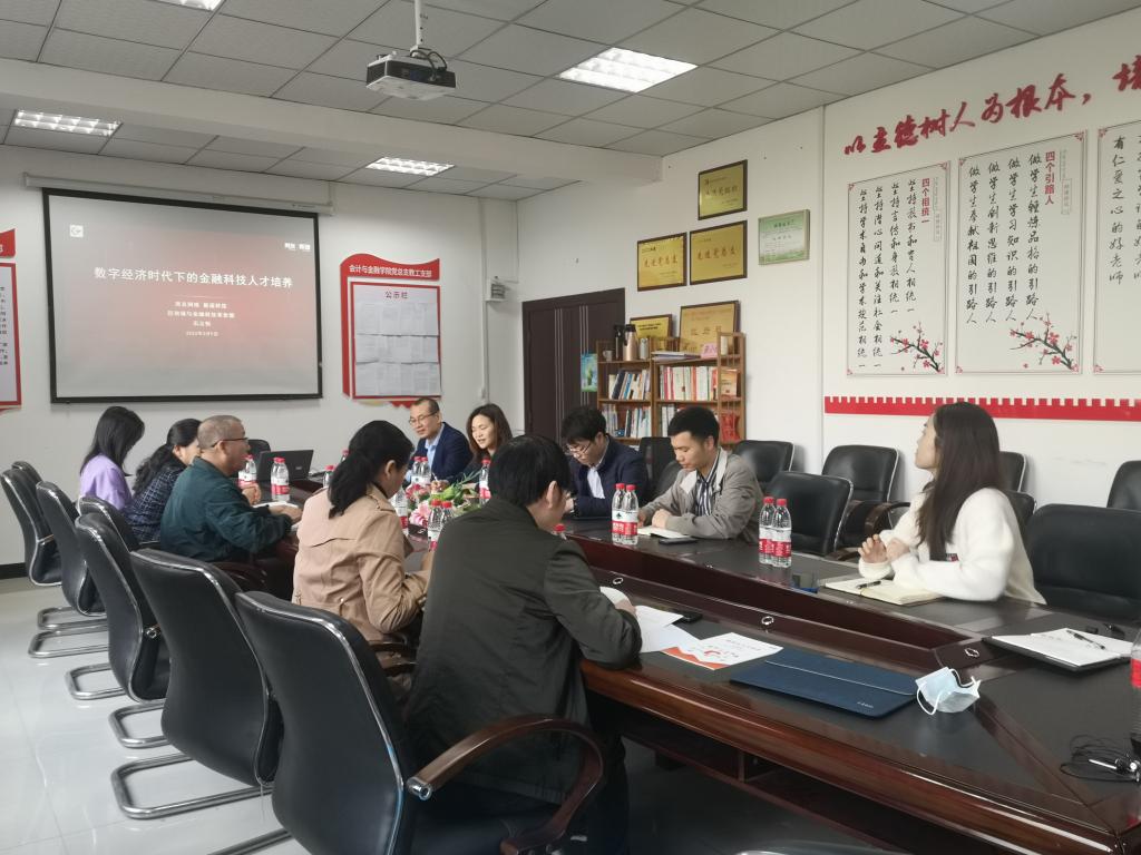 2022年3月9日,会计与金融学院与新道科技股份有限公司于合川校区B223教室开展“校企合作培养金融人才”的会议。