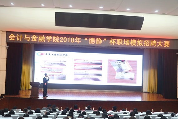 【供稿/余洋时文龙王欢为丰富校企合作内容形式,促进学生就业,由重庆工商职业学院会计与金融学院主办,重庆德静企业管理服务有限公司承办的 2018年“德静”杯职场模拟招聘大赛于11月12日下午2时在科学会堂举行。