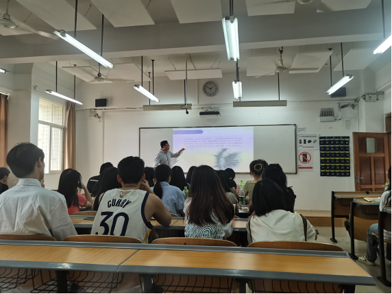【供稿陈香姑】为切实贯彻党的二十大精神,充分发挥党团组织教育党员及团员青年的作用,强化大学生思想政治教育,有效开展青年学生思想政治引领,会计与金融学院邀请审计处科技处对外合作处质量办联合支部宣传纪检委员刘波老师给22级金融服务与管理4班的同学讲了一堂别开生面的党课。