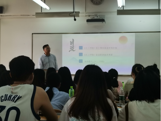 讲座中,刘波老师以“由《天工开物》看中国独特的发明创造”为主题,以人类社会发展时代的变迭为开篇,强调了科技力量的重要性,从《天工开物》的主要内容及学术价值、《天工开物》促进欧洲技术革新 、宋应星与《天工开物》等三个方面讲述了《天工开物》的传承价值。从“中国制造”到“中国创造” ,从“中国速度”到“中国质量” ,从 “中国产品”到“中国品牌”,创新是引领发展的第一动力,是推动国家高质量发展的有力支撑。