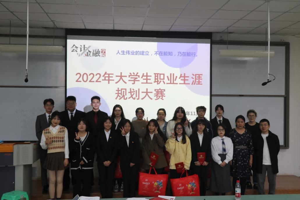 为增强广大学生职业规划意识,帮助其明确学习目的,增强学习动力,掌握职业规划技能。2022年11月2日下午2点,会计与金融学院在励志楼D308举办了“勇往‘职’前,规划未来”大学生职业生涯规划大赛,罗正媛老师、张国君老师、刘萍老师和李佳霓老师担任此次比赛的评委。
