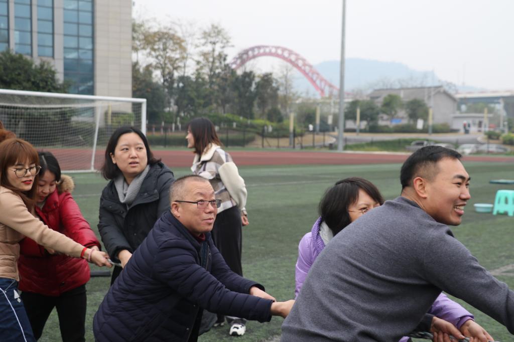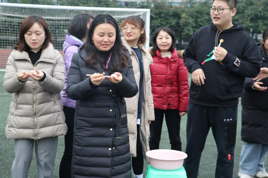 此次趣味运动会共分为5个环节,热身准备活动、漫漫长征路——两人三足游戏接力赛、精准投掷——筷子夹球、“齐心协力”——跳大绳、“家园保卫战”——拔河比赛。在比赛过程中老师们个个都全力投入,赛出了个人的风采,赛出了集体的凝聚力。每一个比赛项目都不单是智慧和体力的角逐,更是团结和协作的完美比拼。