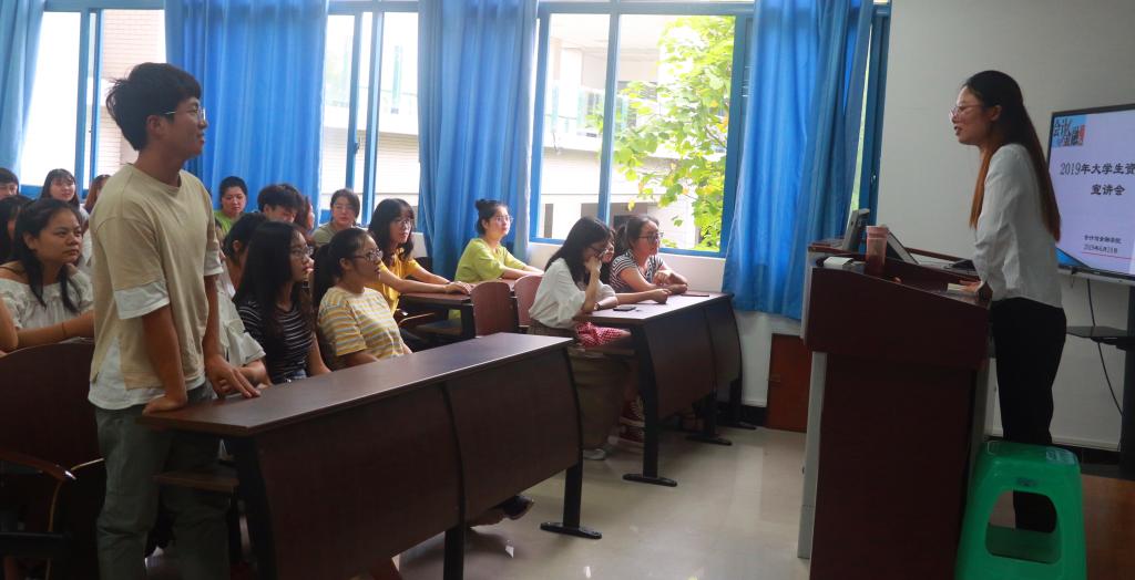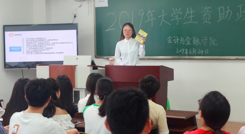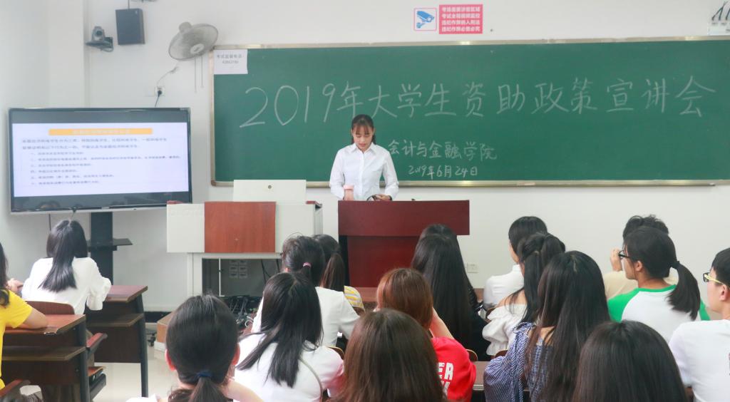 【供稿人/时文龙】 6月24日下午,我院在育能楼B302教室成功举办了2019年大学生资助政策宣讲会。宣讲会由校“学生资助宣传大使”陈宏、刘丹、陈秋瑞担任主讲,各班学生干部、国家奖助学金获得者及部分学生代表共计60余人参加了宣讲会。