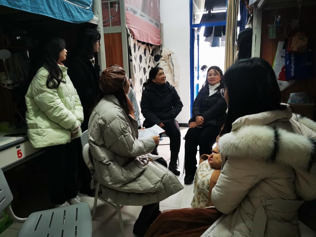 【供稿/王若衡】为切实关心帮助家庭经济困难的学生度过寒冬,解决学习和生活问题,助力每一位学子成长成才,2023年12月20日下午,学院刘东辉院长、刘茂玲副书记、办公室主任牛媛、教务科科长刘龙峰、就业科科长王常兵、组织专员刘萍以及辅导员王若衡、时文龙、陈香姑深入宿舍看望学生。