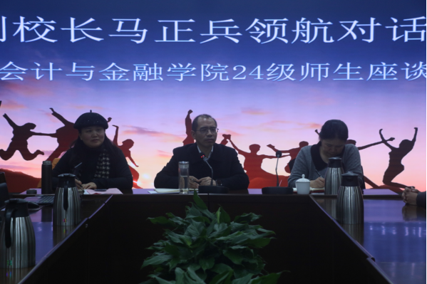 为深入了解广大学生的在校情况与需求,促进各地、各民族学生的融合与交流,2024年12月5日下午,副校长马正兵教授主持召开了会计与金融学院2024级师生座谈会,会计与金融学院院长刘东辉教授、党总支副书记刘茂玲副教授、学生科科长柴胜锋和2024级辅导员出席了本次座谈会。