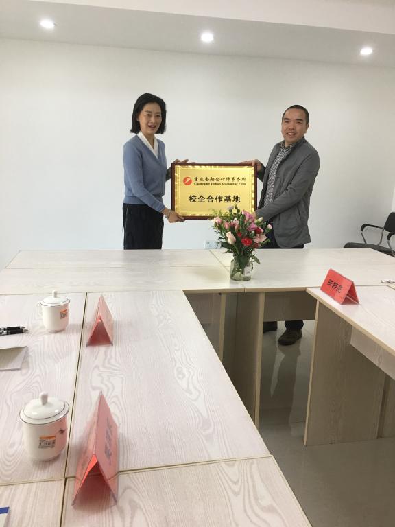 2018年4月2日上午10点,会计与金融学院副院长方华教授、会计教研室罗小明教授、陈丽虹教授、吴清泉副教授及刘龙峰老师与重庆金翰会计师事务所所长李方全所长、赖红毅副所长、高飞经理、胡兴霜经理、张邦亮经理在重庆金翰会计师事务所对双方校企合作事宜进行洽谈并举行授牌仪式。