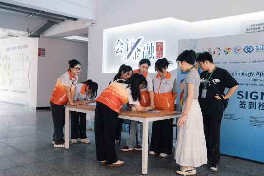 【供稿刘萍】为确保2024金砖国家职业技能大赛金融科技应用赛区域选拔赛工作有序进行,为比赛选手顺利完成比赛保驾护航,2024年9月20日、9月21日,“红岩先锋服务岗”十余名志愿者在合川校区育能楼开展志愿服务,助力比赛。志愿者由党员、入党积极分子组成。